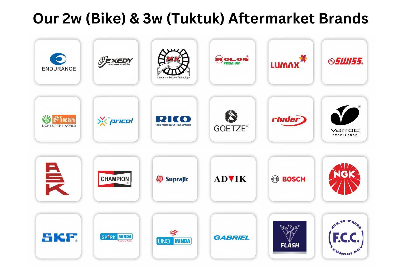 Pertama, kami menawarkan rangkaian luas jenama asli (OEM) seperti Bajaj, Hero, TVS, Honda, Yamaha, dan banyak lagi,